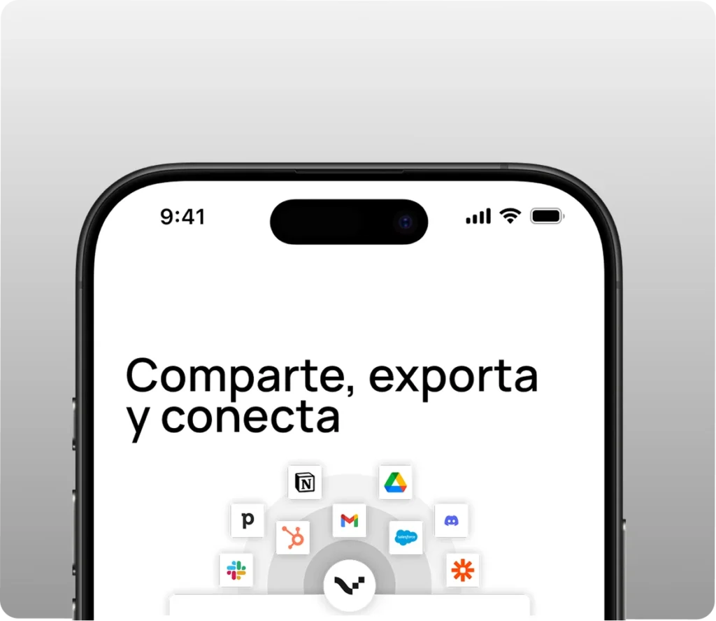 Extrae información que necesitas de reuniones y entrevistas online, presenciales o telefónicas sin esfuerzo. Compatible con hasta 8 idiomas. Sin bots que interfieran en la conversación.
